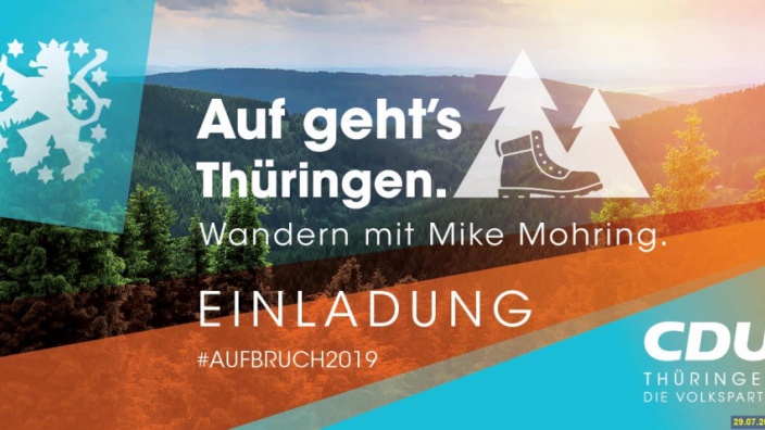 29.07.2019 Einladung 1. STATION EISENACH Genau heute in einer Woche startet unsere "Auf geht's Thüringen. Wandern mit Mike Mohring"-Tour in Eisenach am Schloss...
