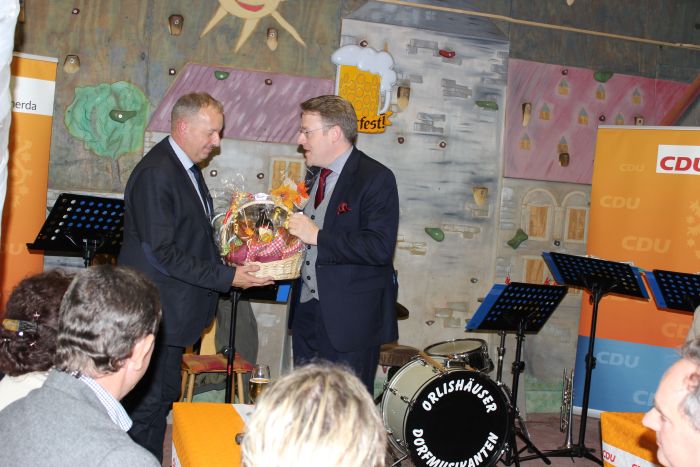 Kreisvorsitzender Christian Carius begrüßte herzlich die 150 gut gelaunten Gäste im Weißenseer Geleithof unterhalb der Runneburg.